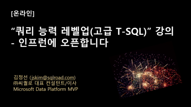 6월 중순에 SQL Server 컨설팅 이야기 시즌14를 진행합니다, 컨설팅 사례로 배우는 실무자들을 위한 특강입니다. 중요 내용은 아래를 참고하시고 많이들 오셔서 지식, 정보, 경험을 함께 나누는 시간되시길 바랍니다. 기타 상세 정보는 아래 등록 링크의 내용을 참고하세요. 일정: 2024-06-19 (수), 오후 2 ~ 6시(4시간) 장소: 모두의연구소 강남캠퍼스 등록: https://www.onoffmix.com/event/301333 중요 내용: tempdb 파일 or Log 파일 용량 증가 TokenAndPermUserStore 캐시 대량 증가 MEMORYCLERK_SOSMEMMANAGER Windows 가용 메모리 부족 볼륨 유지 관리…